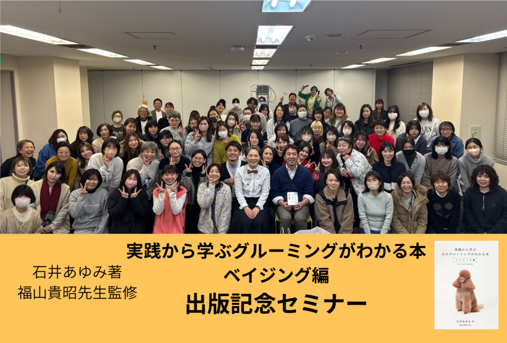 先日、東京でセミナーを開催いたしました。 今回のセミナーは、昨年9月に出版した 「実践から学ぶ犬のグルーミングがわかる本~ベイジング編~」 の出版記念として行ったものです。 この本は、トリマーさんをはじめ、動物に関わるお仕事をされている方に向... お知らせ