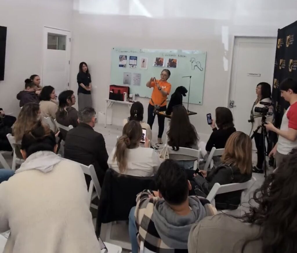 アメリカのグルーミング学校でセミナー|テリアクリップとシザー技術を講義