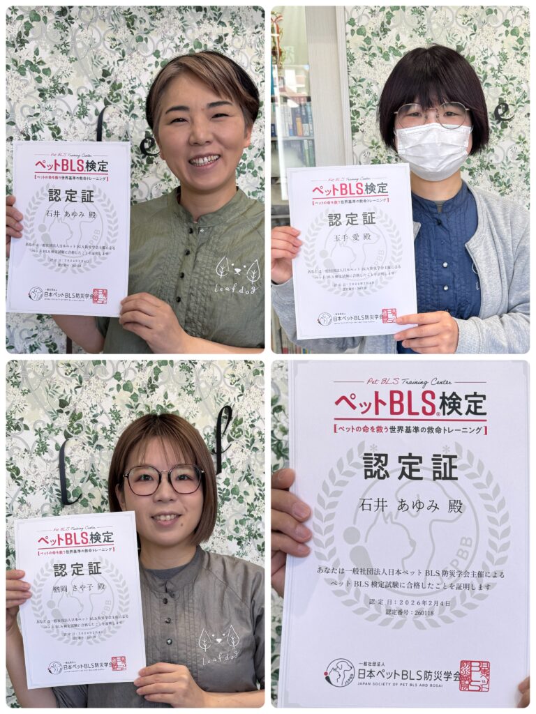 先日受講した ペットBLS検定 に無事合格いたしました。