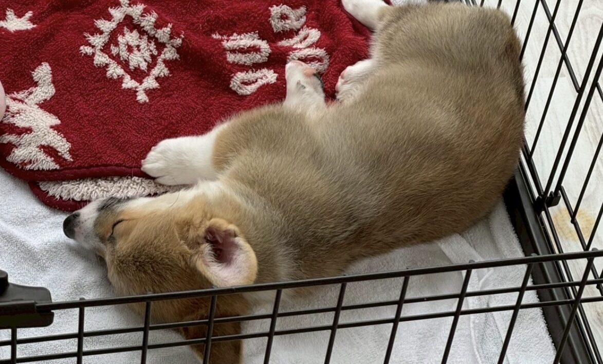 普段はサークルの中で身体を横にして、ぐっすり眠る子でした。